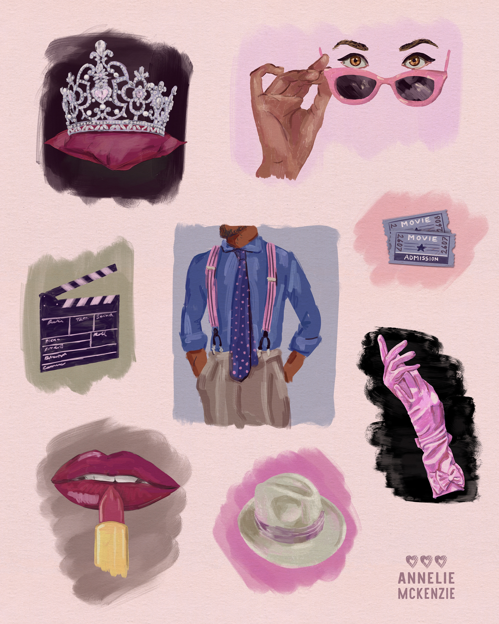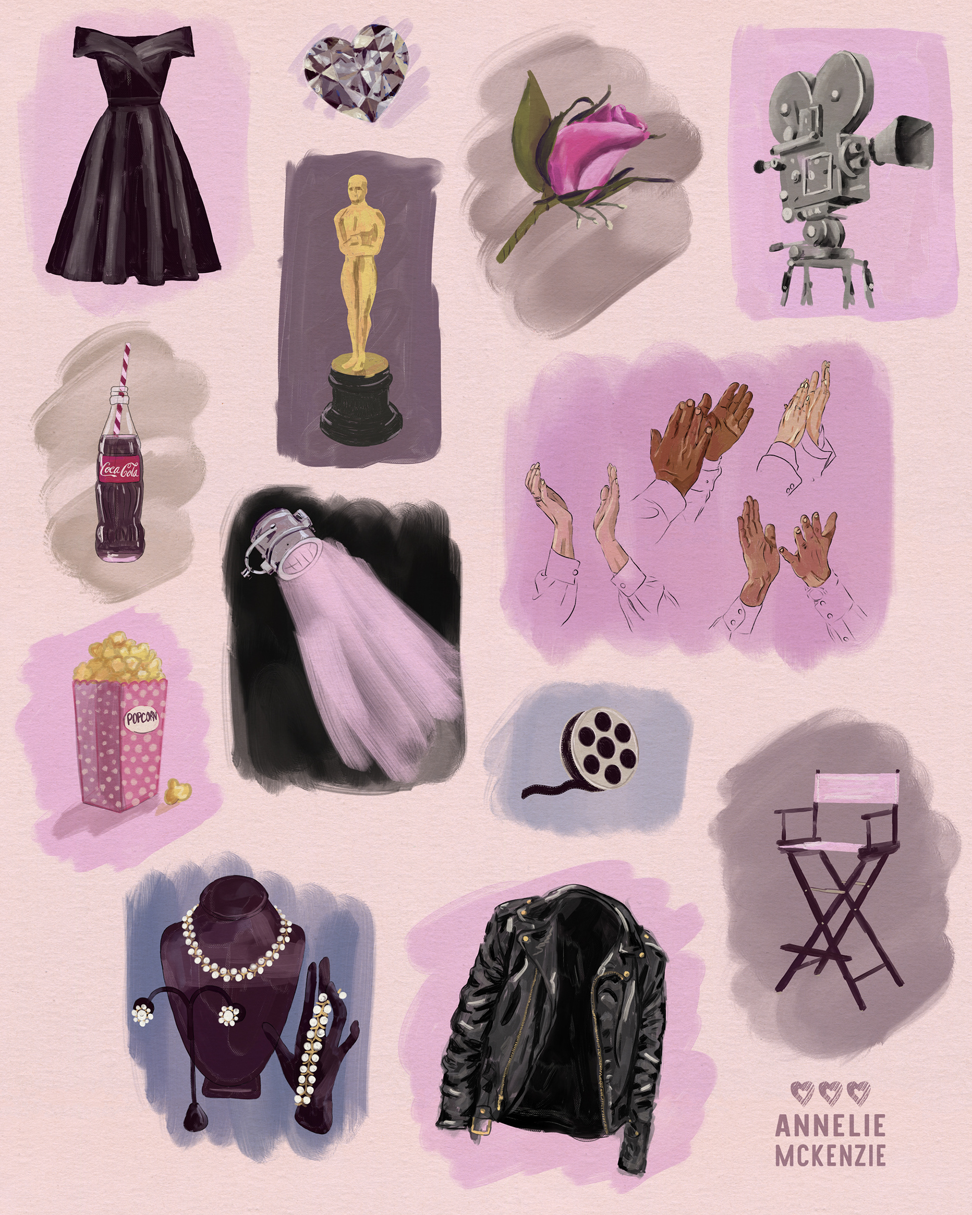 Hollywood themed spot illustrations done on the theme of Hollywood.
